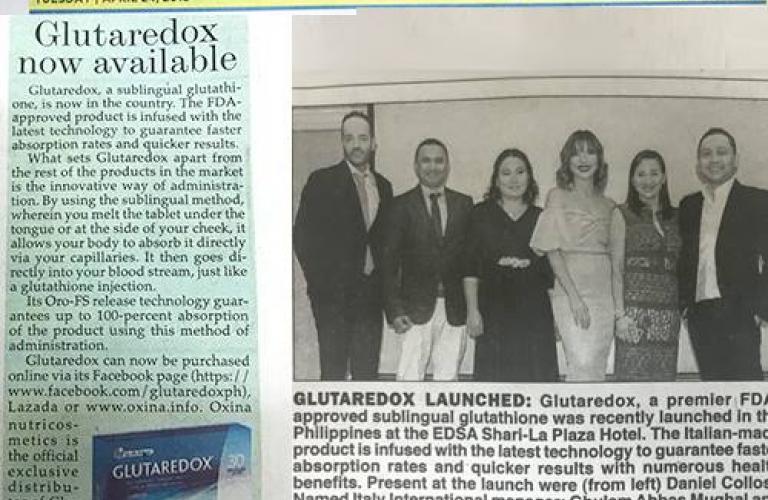 Glutaredox, a buccal tablet glutathione, is now in the country. Made from Italy with Oro-FS Release Patent.