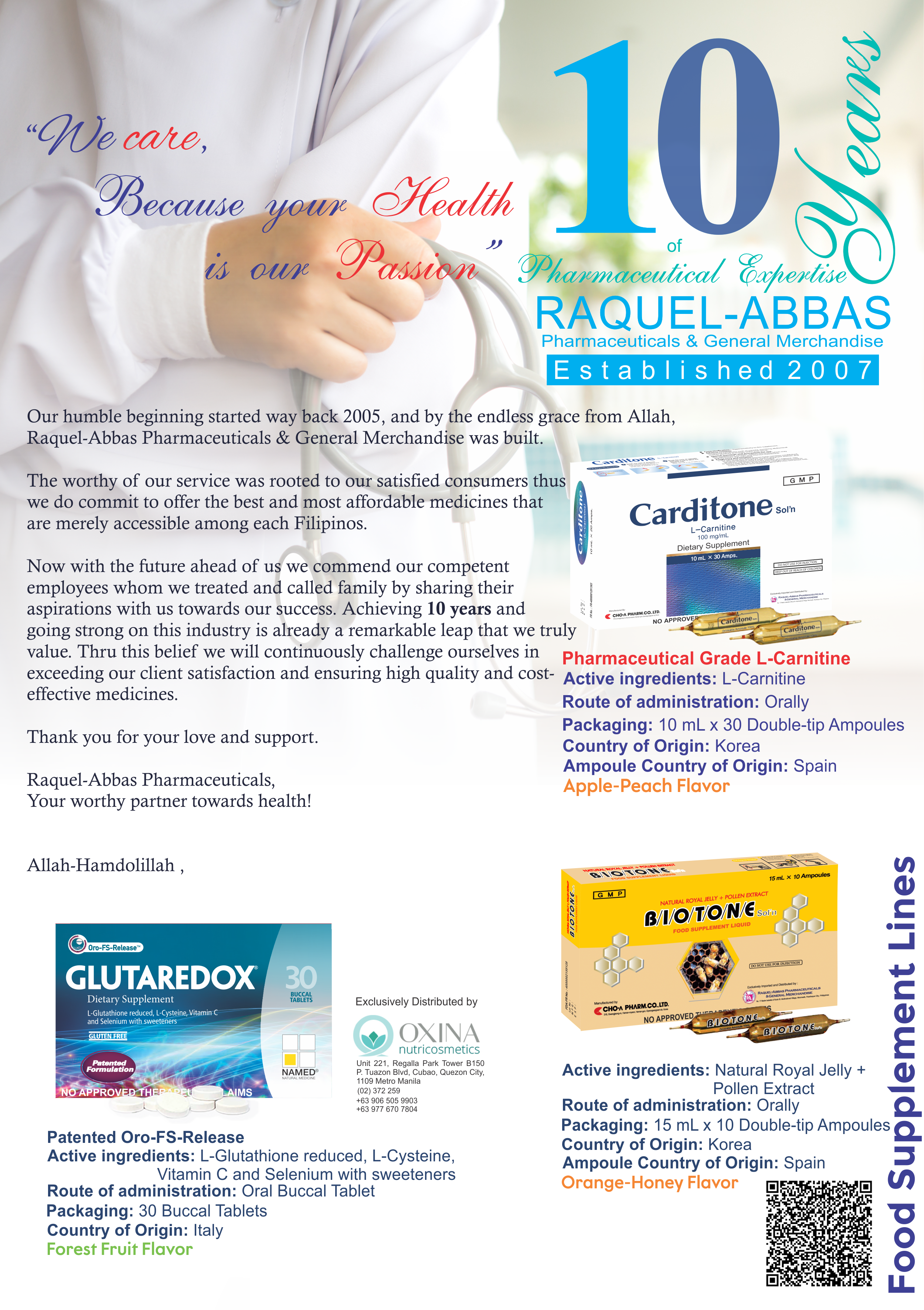Posted on July 31, 2017Our humble beginning started way back 2005, and by the endless grace from Allah, Raquel-Abbas Pharmaceuticals & General Merchandise was built.